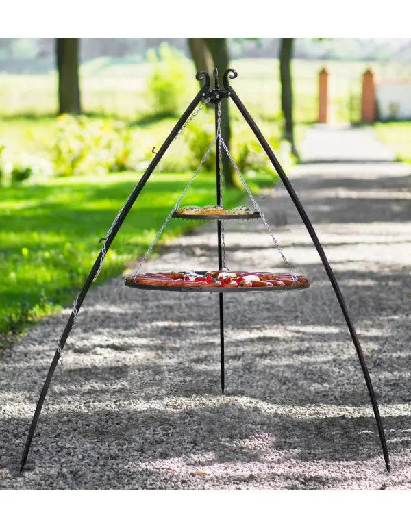 Vil du have det bedste fra begge verdener? Så er et bålstativ med rist og gryde den oplagte løsning. Her kan du grille kød på risten, mens gryden simrer med sauce, suppe eller tilbehør.