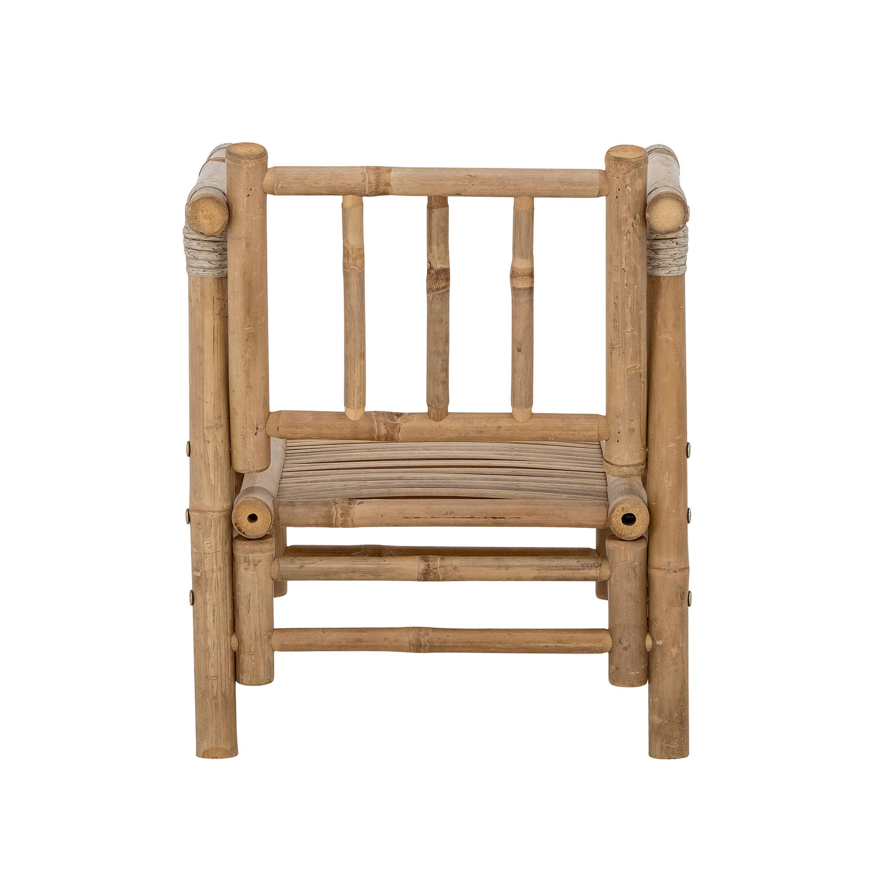Mini Sole Stolen fra Bloomingville MINI er en smuk loungestol til børn. Stolen er lavet i bambus og har et varmt og naturligt look. Placer den i stuen eller børneværelset for at skabe et hyggeligt sted, hvor børnene kan sidde ned og slappe af. Produktet kan variere grundet materialerne og skal samles af en voksen før brug.