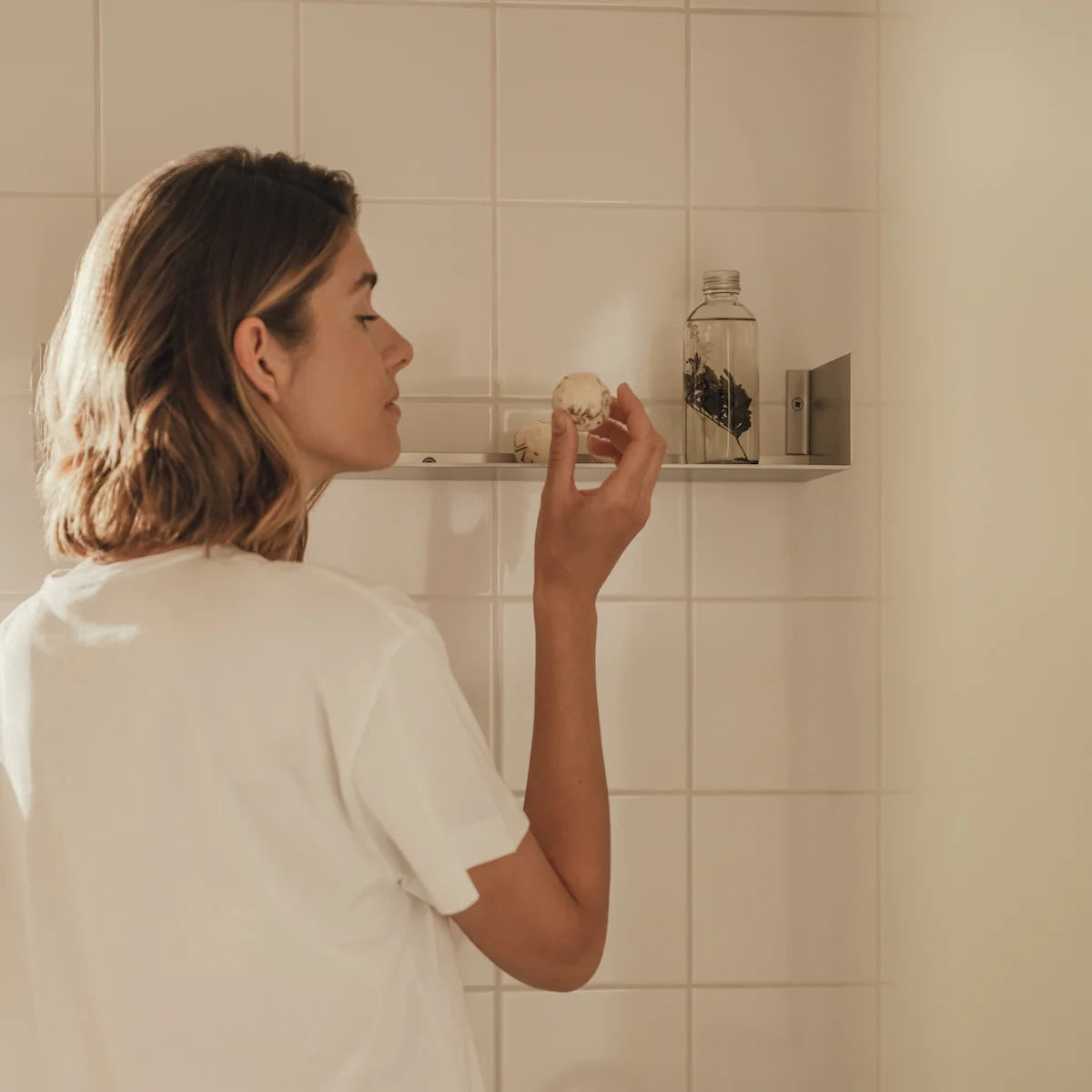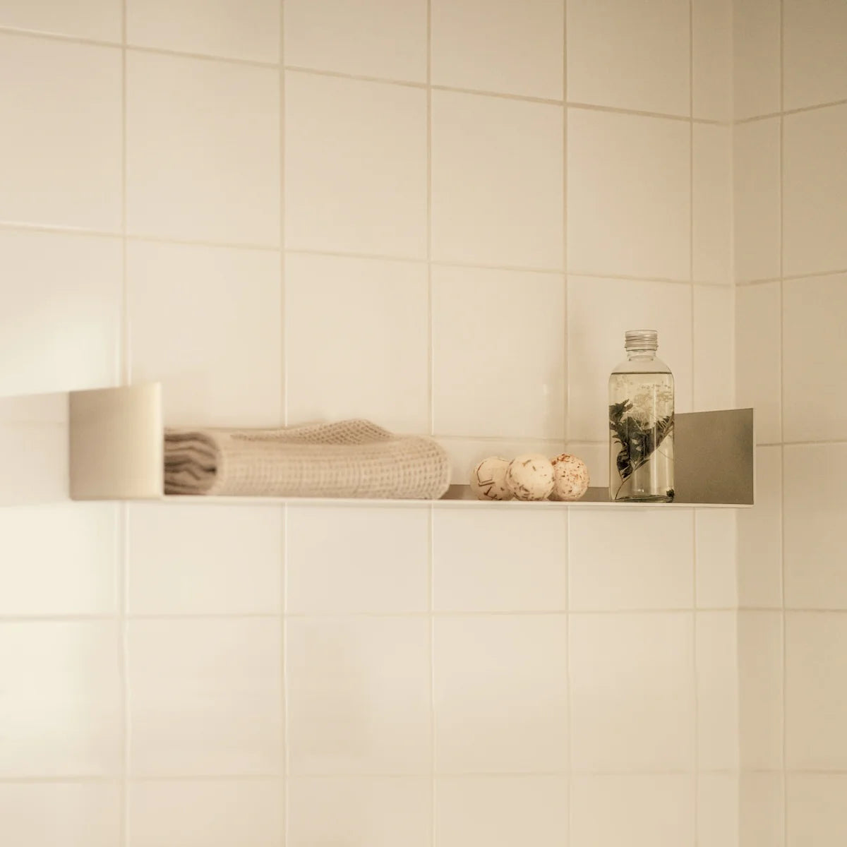 Hylden leveres med rustfri stålskruer og universaldyvler, så monteringen bliver stabil og sikker. Når den først er monteret, fremstår hylden let og elegant på væggen – uden at gå på kompromis med styrke eller funktionalitet.
