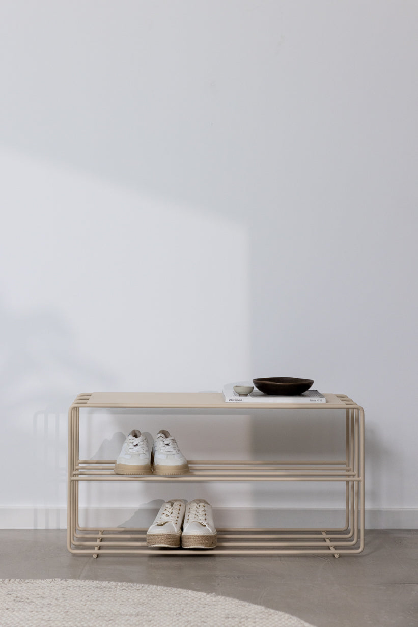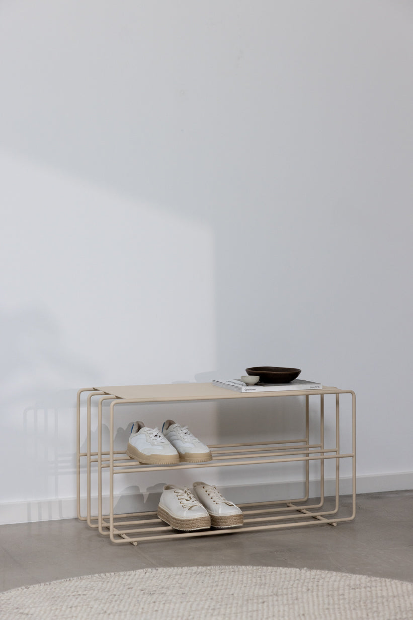 Beige skoholder med bænk i beige