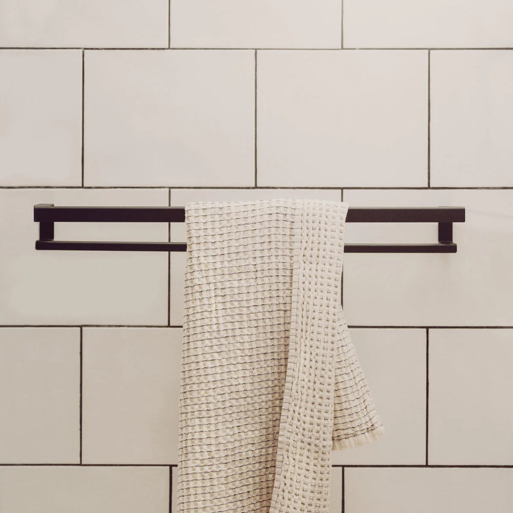 Stærkt visuelt udtryk – match håndklædeholder i sort, krom eller messing med armaturer, spejlrammer og tilbehør.
