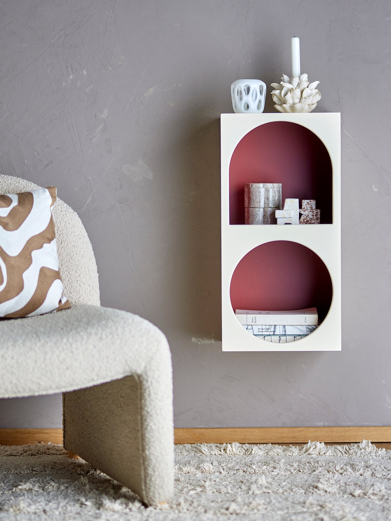 Graphia Bogreolen fra Bloomingville er et stilrent, moderne og alsidigt opbevaringsmøbel, skabt til dig der ønsker et grafisk og nutidigt element i indretningen. Reolen er lavet af MDF og har en elegant hvid front, som giver et rent og minimalistisk udtryk. Den mørkerøde bagbeklædning fungerer som et smukt visuelt modspil, der tilføjer dybde, varme og kant til reolens design. Denne kontrast gør reolen til et dekorativt statement-piece, som både kan fremhæve bøger, kunstobjekter, keramik eller andre personlige genstande.