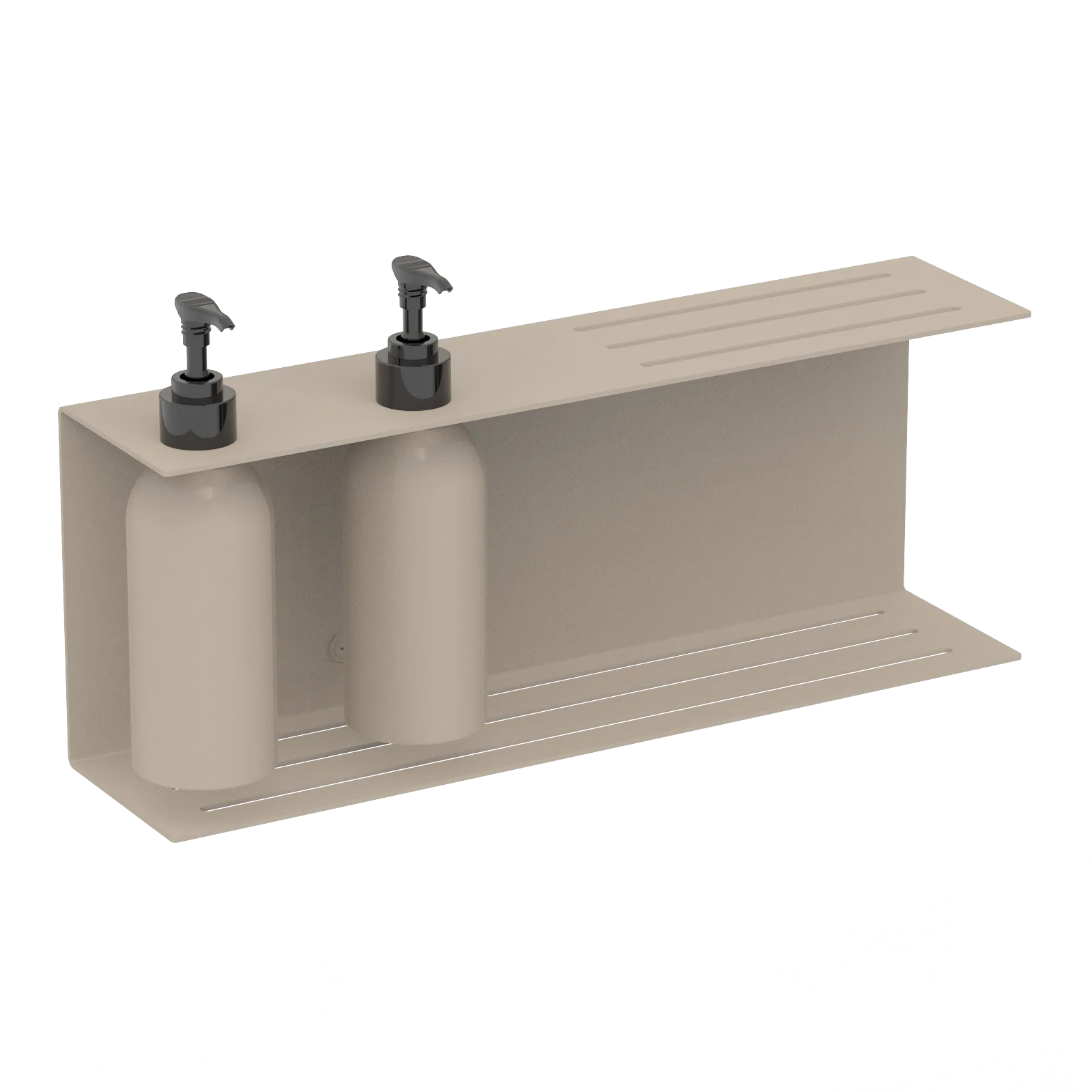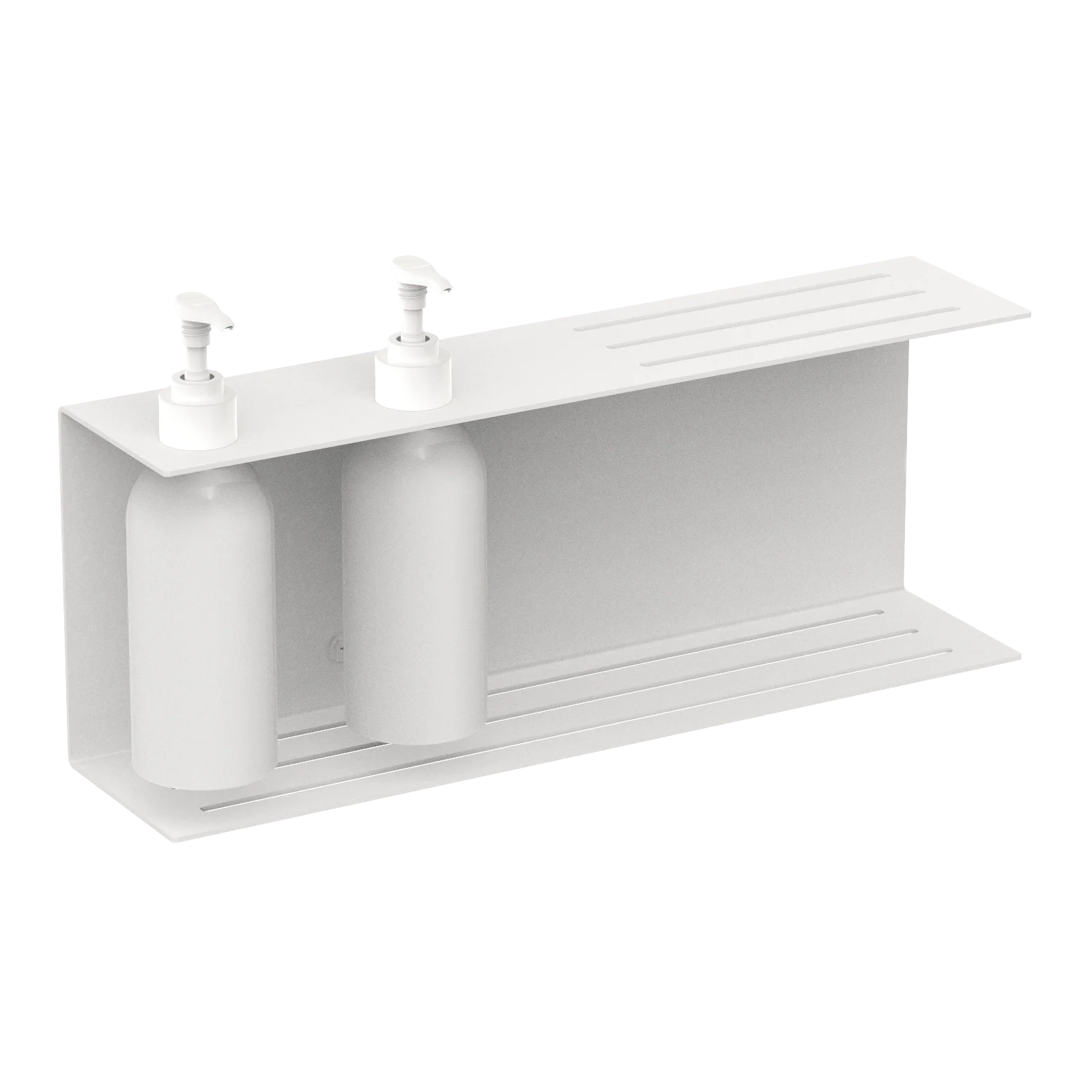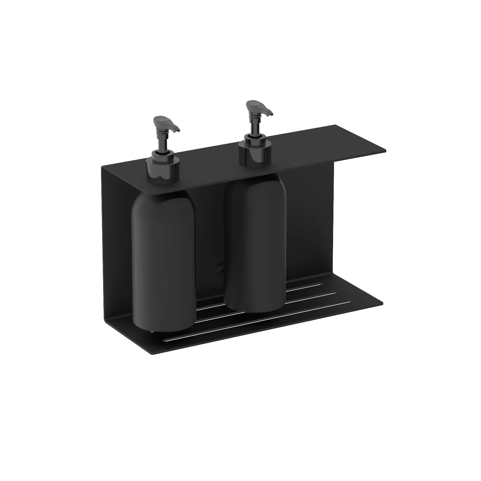 PALERMO pumpeflaskeholderen er en elegant og funktionel løsning til dig, der ønsker mere orden og et ryddeligt udtryk i badeværelset eller køkkenet. Med et minimalistisk design og væghængt montering frigør PALERMO værdifuld bord- og hyldeplads ved at samle sæbe, shampoo og rengøringsmidler direkte på væggen – præcis dér, hvor du bruger dem.