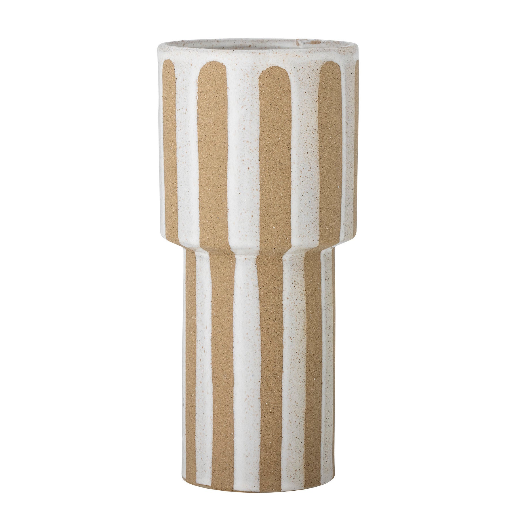 Awah Vasen fra Bloomingville er dekoreret med en smuk hvid glasur, hvilket giver den et rustikt og unikt udseende. Vasen er ideel til buketter, grene eller tørrede blomster - dens enkle og stilfulde design vil tilføje et strejf af nordisk stil til hjemmet.