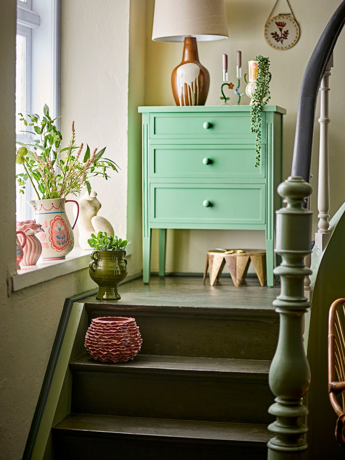 Morwen Vasen fra Bloomingville har en rød og rosa glaseret overflade, med gennemgående, bølgede lag, som giver en dynamisk tekstur. Det udtryksfulde design fanger øjet og gør vasen til et kunstnerisk midtpunkt. Vasen er lavet i stentøj, og glasuren kan variere i farven.
