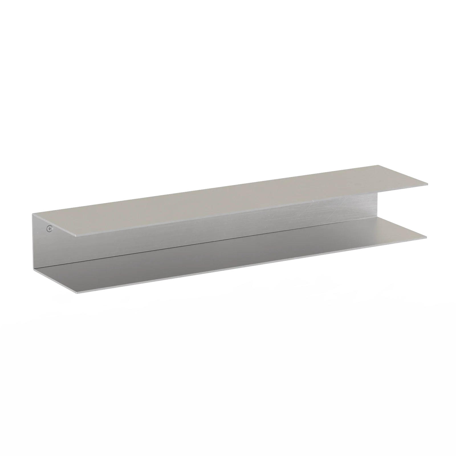 Hylden er fremstillet i 3 mm aluminium og afsluttet med en mat, farveløs beskyttende coating, der gør overfladen modstandsdygtig over for fingeraftryk, mindre ridser og begyndende patina. Samtidig bevarer hylden det autentiske udtryk af rå aluminium.