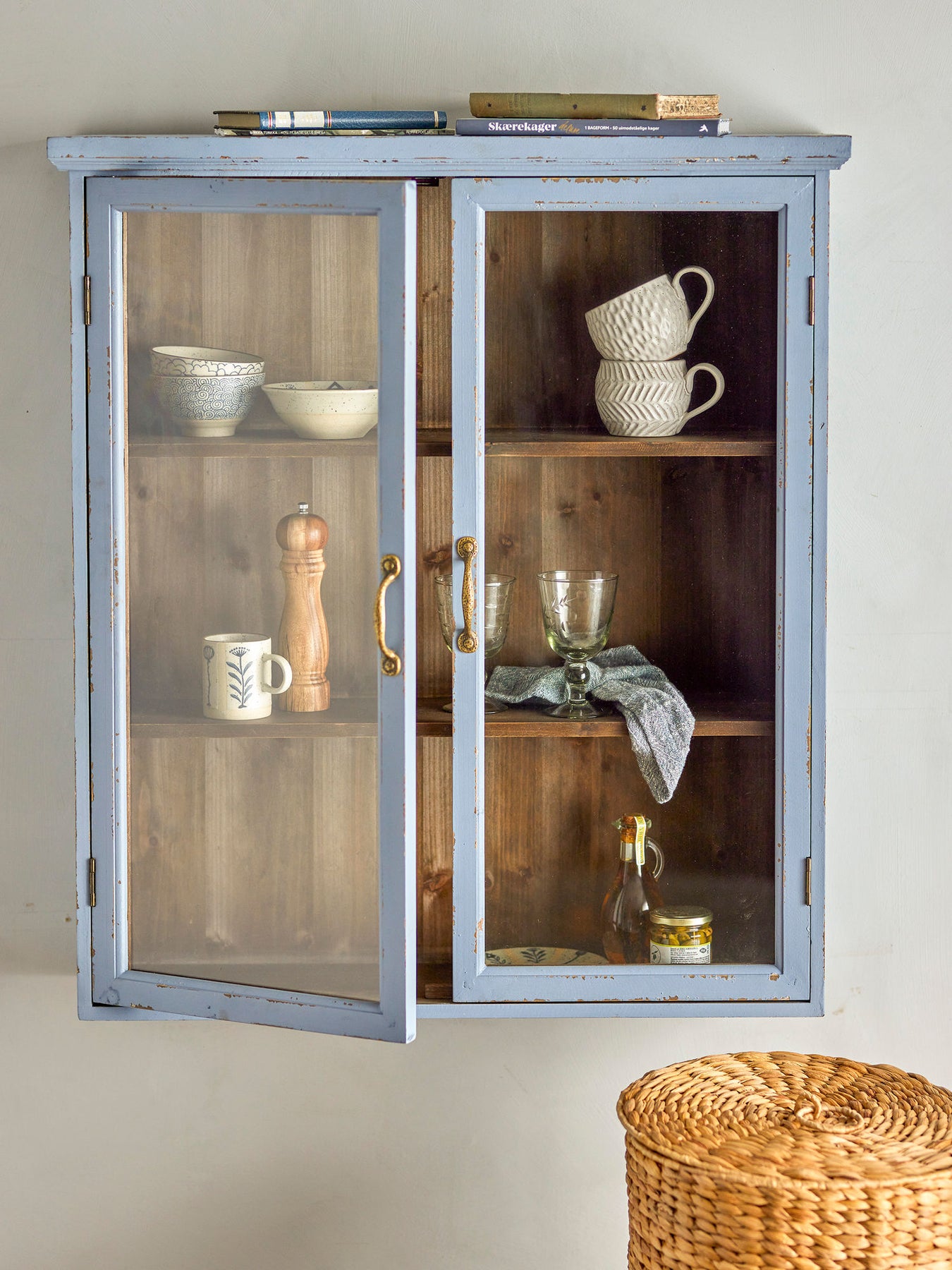 Glasdørene foran gør Hazem Skabet særligt velegnet til dekorativ opbevaring. De skaber et let og åbent udtryk, så du kan fremvise dine yndlingsgenstande på en elegant og indbydende måde. Hvad enten du ønsker at vise smuk keramik, fine glas, personlige souvenirs eller kuraterede dekorationsobjekter, giver glasdørene mulighed for at skabe en personlig udstilling. I køkkenet fungerer skabet perfekt som en charmerende udstillingsvitrineskab, i hjemmekontoret som en stilfuld bogreol, og i stuen som et kunstnerisk opbevaringsmøbel, der tilfører rummet karakter og farve.