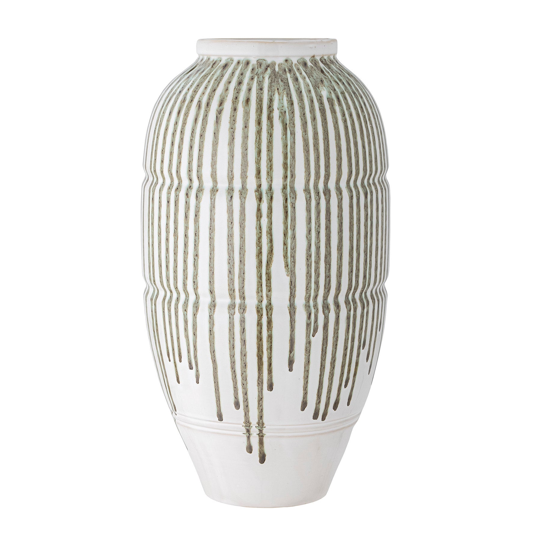Scarlet Vasen fra Creative Collection er en høj og smuk hånddekoreret vase i en hvid farve med en grøn løbende glasur. Perfekt på gulv og bord. Hver vase er unikt, da den er dekoreret i hånden.