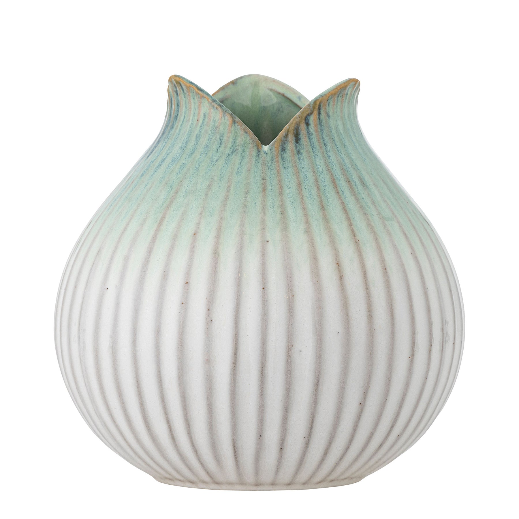 Skylar Vasen fra Creative Collection er lavet af stentøj med en reaktiv glasur, der toner fra grøn til natur. Den riflede overflade og bløde farveovergang giver vasen et dekorativt udtryk, som gør hver vase unik.