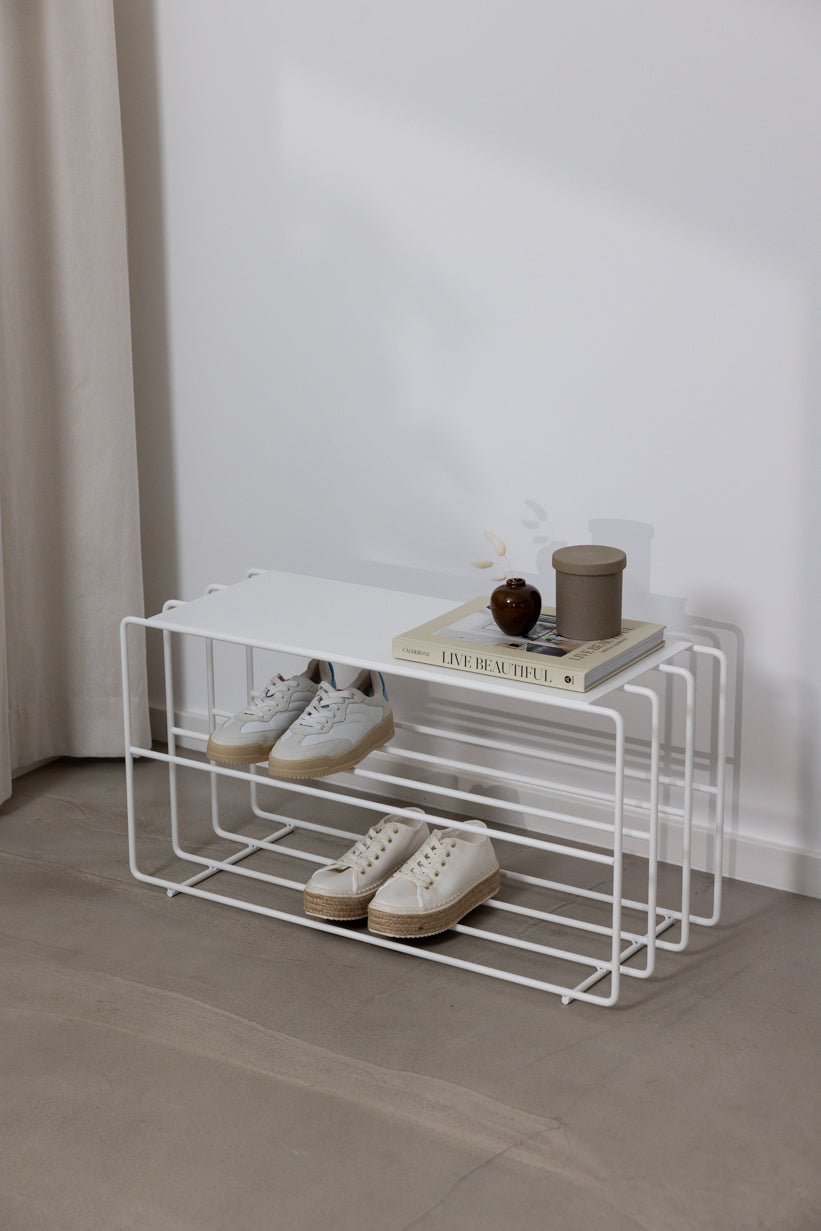 Mangler du noget bestemt i din entre? Så vil du helt sikkert kunne lide skostativet NEVA - en unik metal skobænk med loft flair. Den integrerer sig afslappet som et ægte unikt stykke boliginteriør ethvert indgangsparti. Den smalle metalhylde kan også bruges som bænk i indgangspartiet. Med sin letplejende overflade viser den sig ikke kun tidløs, men også holdbar. Denne unikke skoreol findes i forskellige farver.